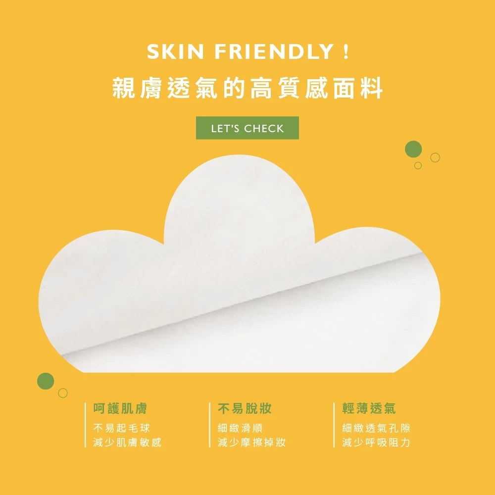 • Skin-friendly inner layer, reduces makeup smudging and friction