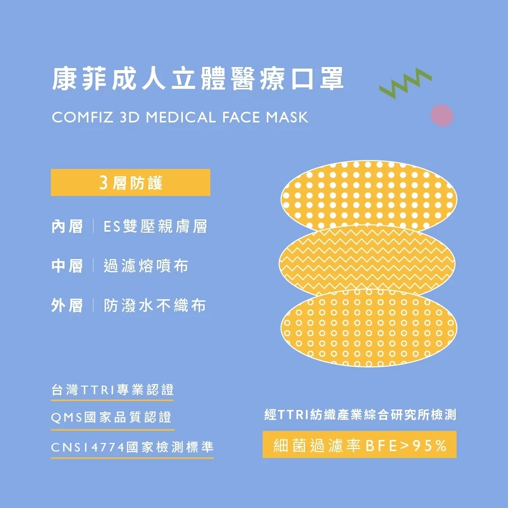 [COMFIZ Official Direct Sales] Adult 3D Medical Masks M/L – 20 pcs/box, Single-piece Packaging | 1 Carton = 40 Boxes (800 pcs Total) | Get a Coupon for Discount